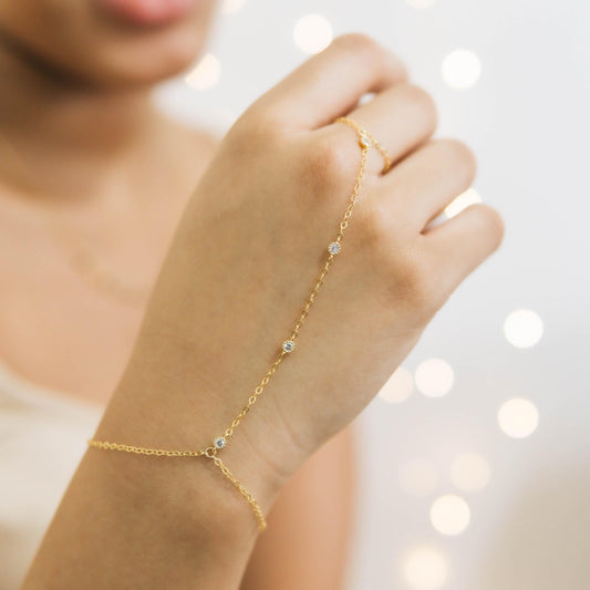 Regular price From £20.00Regular priceUnit price / per£0.00Sale price From £20.00Donna 4 CZ Hand Chain Gold