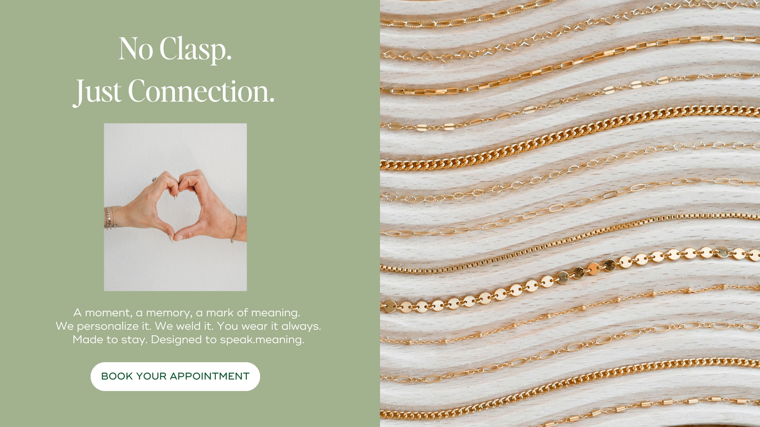Timeless chains custom fit to you, welded without clasps, made to move with your story.